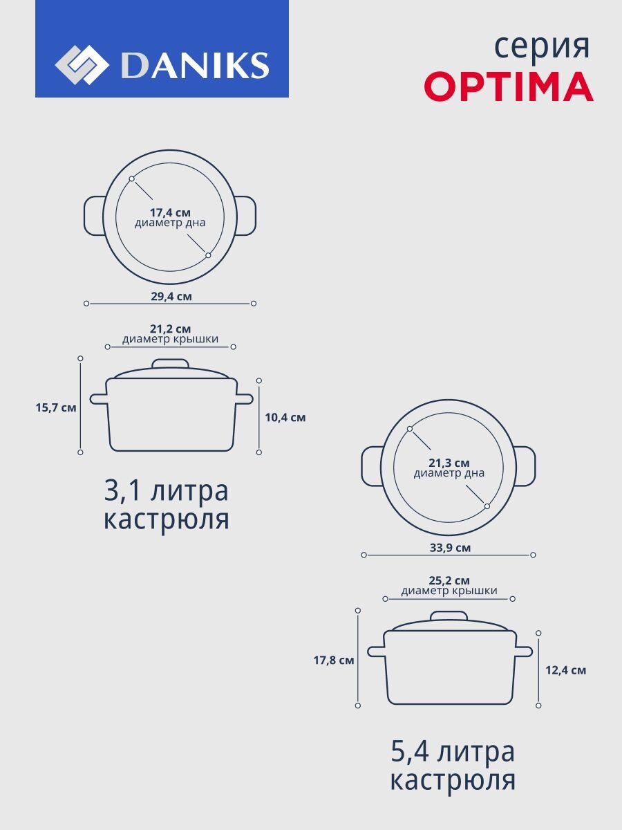 Набор посуды Daniks Оптима из нержавеющей стали на 6 предметов: универсальный выбор для индукции и любых плит, долговечность, выгодная цена.