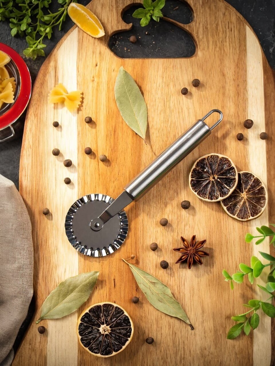 Нож для пиццы Daniks Classic - удобное и практичное решение для повседневного использования. Круглый нож с острым лезвием позволяет быстро нарезать готовую пиццу на кусочки. Также изделие подходит для разрезания сырого теста для приготовления других блюд.