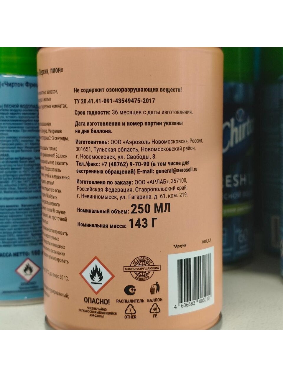 Вы можете приобрести «Освежитель воздуха Arluni, 250 мл, Персик-Пион, триггер, сухое распыление» и другие товары в нашем интернет-магазине в Борисоглебске по низким ценам и с бесплатным самовывозом.