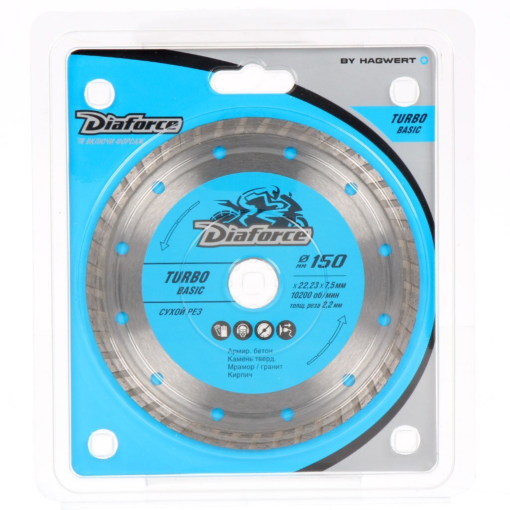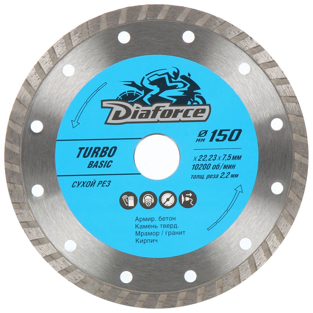 Вы можете приобрести «Диск отрезной алмазный по армированному бетону, Diaforce, Turbo Basic, сплошной край, 150х22.23х2.2 мм, сухой рез, 511150» и другие товары в нашем интернет-магазине в Липецке по низким ценам и с бесплатным самовывозом.