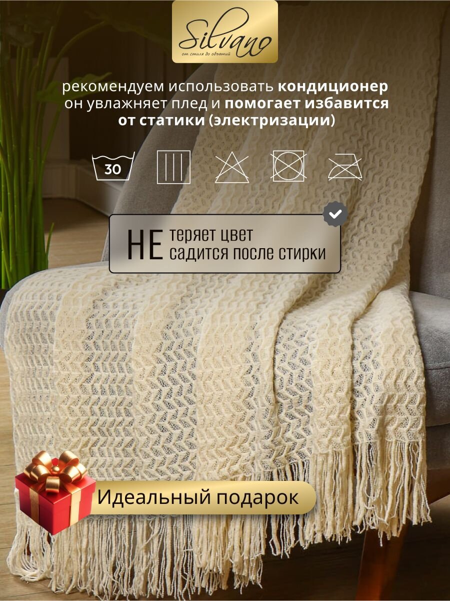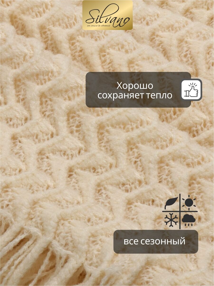Плед Silvano «Теплые объятия зиг-заг» — это современное решение для создания уюта в доме, на даче или в автомобиле. Благодаря плотному вязаному полотну из 100% полиэстера плед сохраняет тепло, не вызывает аллергию и легко переносит частые стирки. Молочный оттенок (бежевый) гармонирует с разными стилями интерьера, а орнамент в виде зигзага добавляет актуальности и уюта.