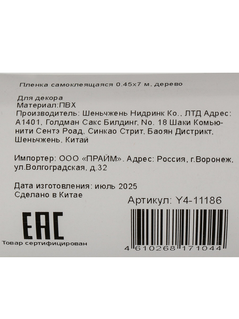 Пленка самоклеящаяся 0.45х7 м, дерево, Y4-11186