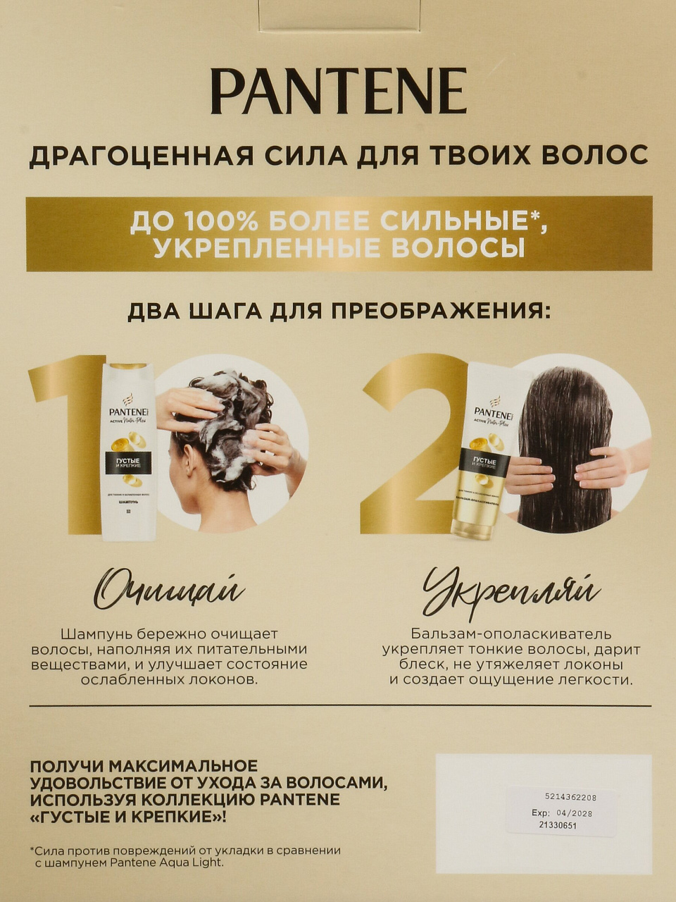 Закажите набор Pantene Pro-V «Густые и крепкие» прямо сейчас — подарите себе или близким уверенность в красоте и здоровье волос по выгодной цене с быстрой доставкой!