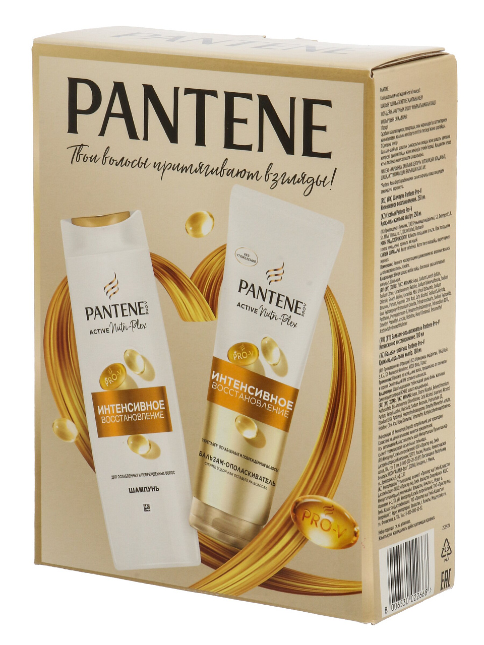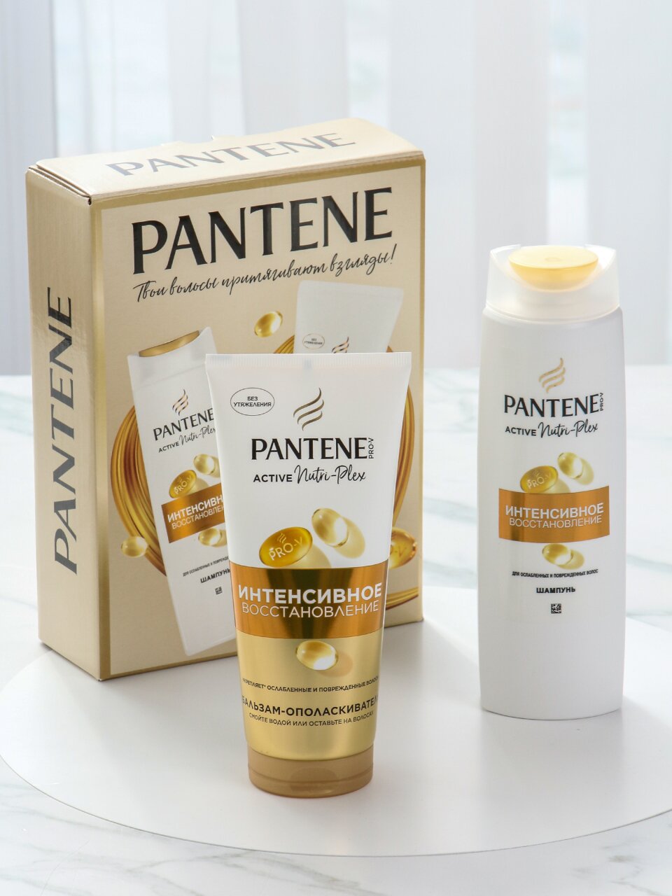 Подарочный набор Pantene Pro-V «Интенсивное восстановление»: шампунь 250 мл + бальзам 180 мл — быстрый способ вернуть волосам гладкость и силу без салонных затрат.