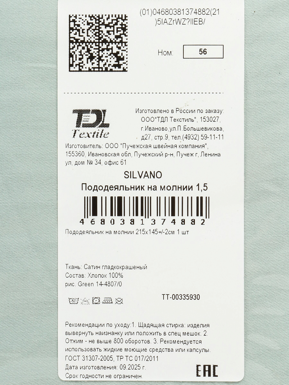 Какой размер пододеяльника Silvano Green и подойдет ли он для стандартного полутораспального одеяла?
