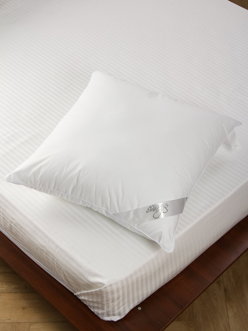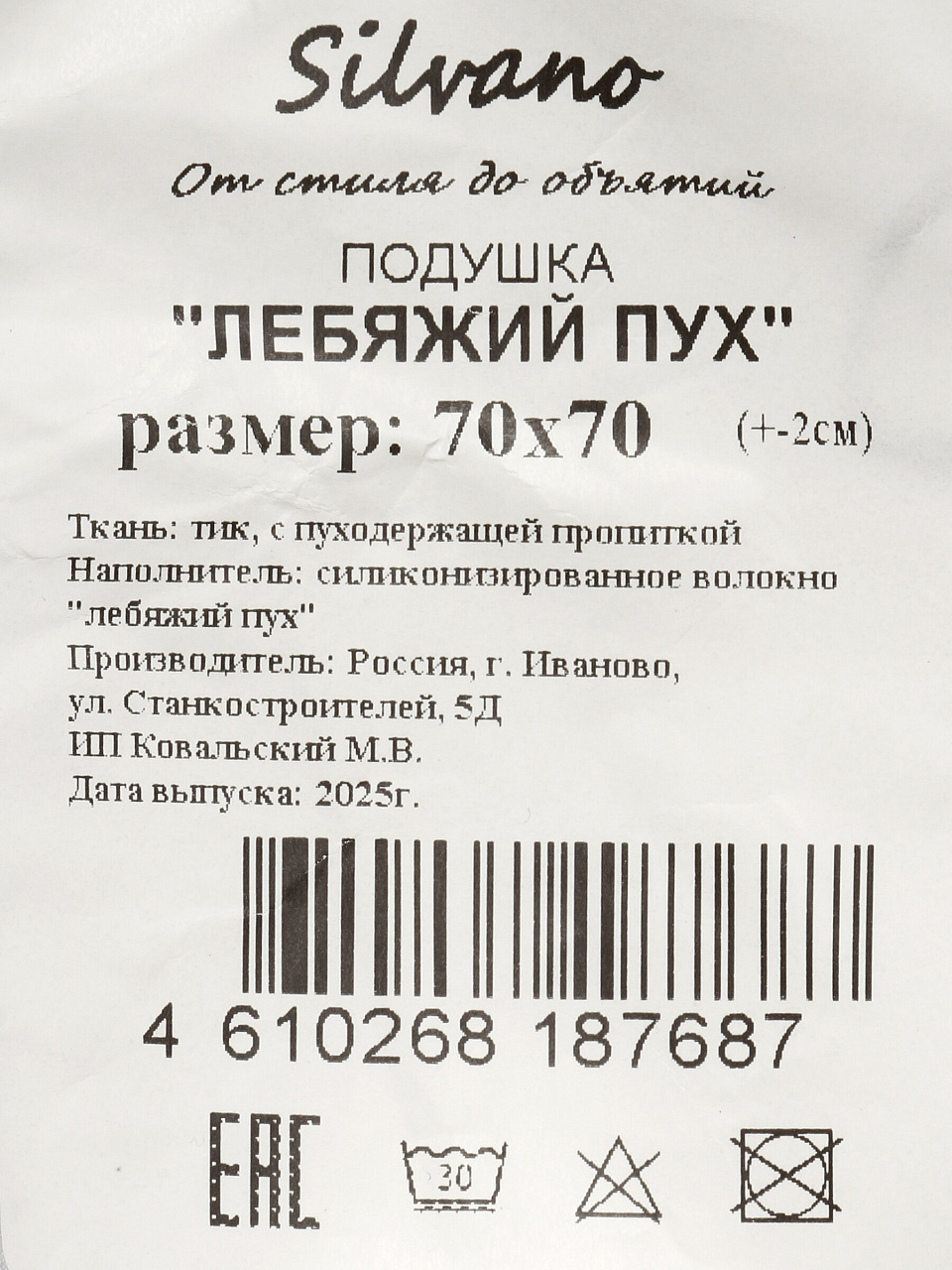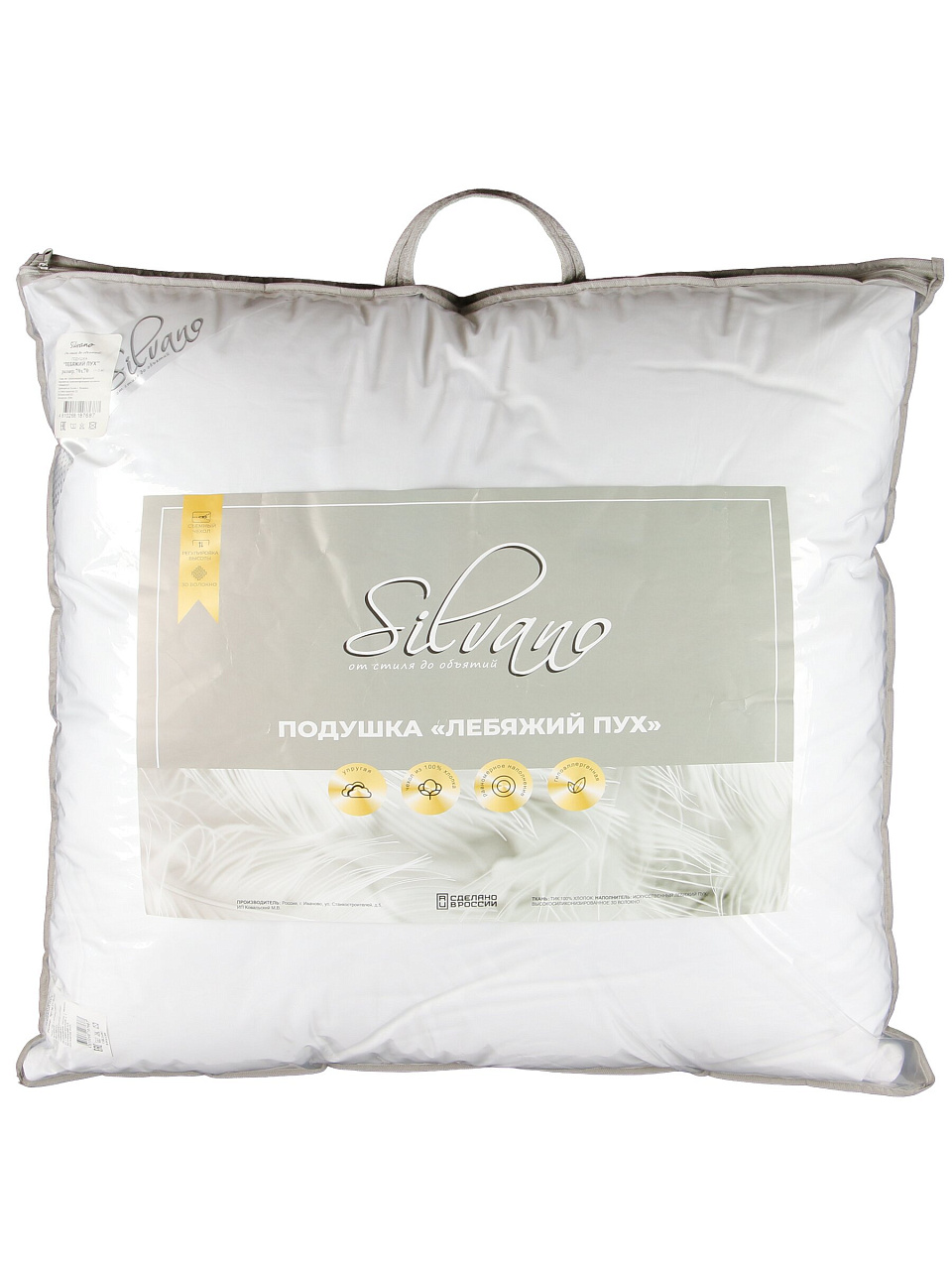 Подушка 70х70 см Silvano на лебяжьем пуху: комфортный сон без аллергии, съемный чехол на молнии, идеальна для дома и дачи — цена без переплат.