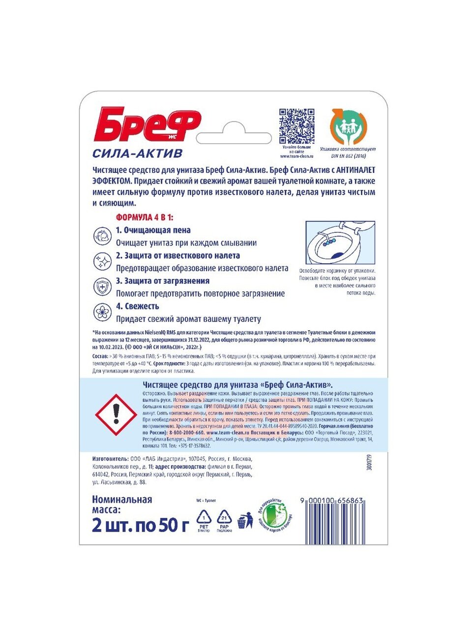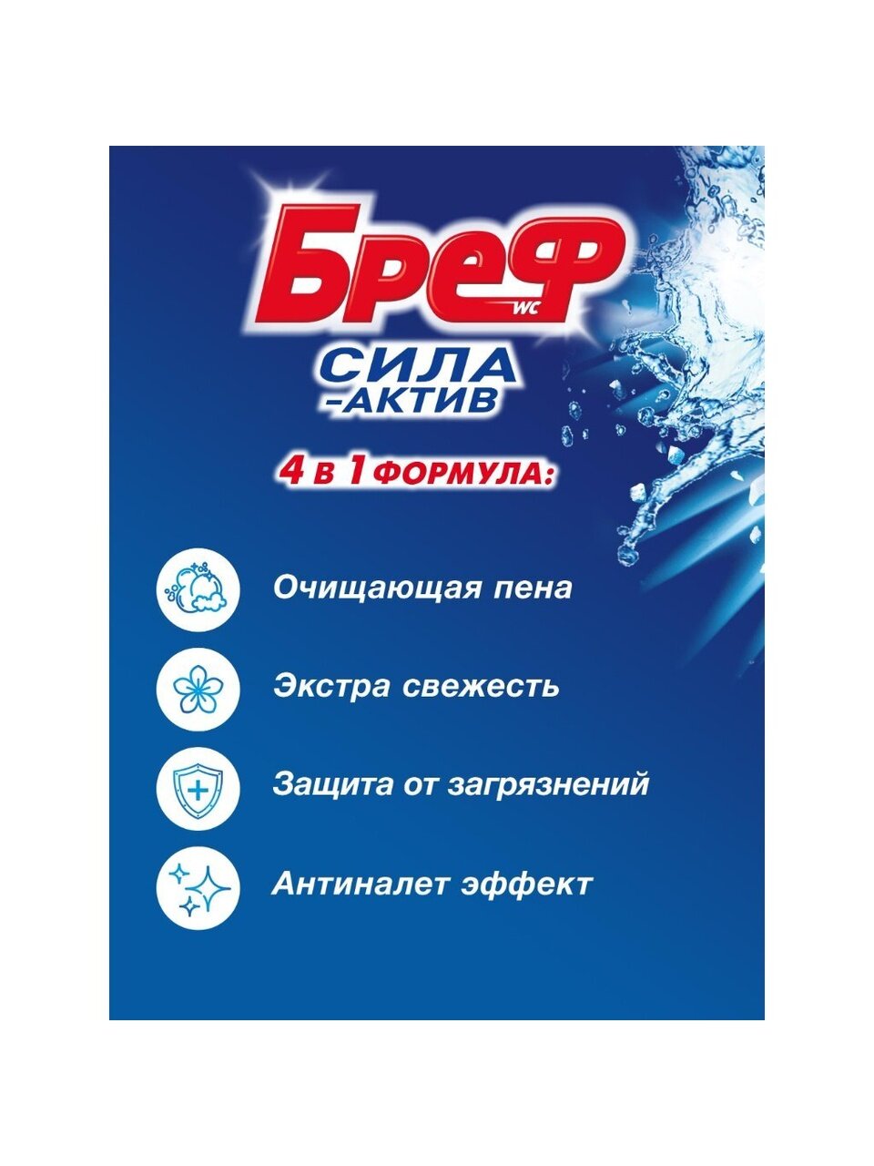 Бреф Сила-Актив — подвесной туалетный блок с усиленной формулой против известкового налета.