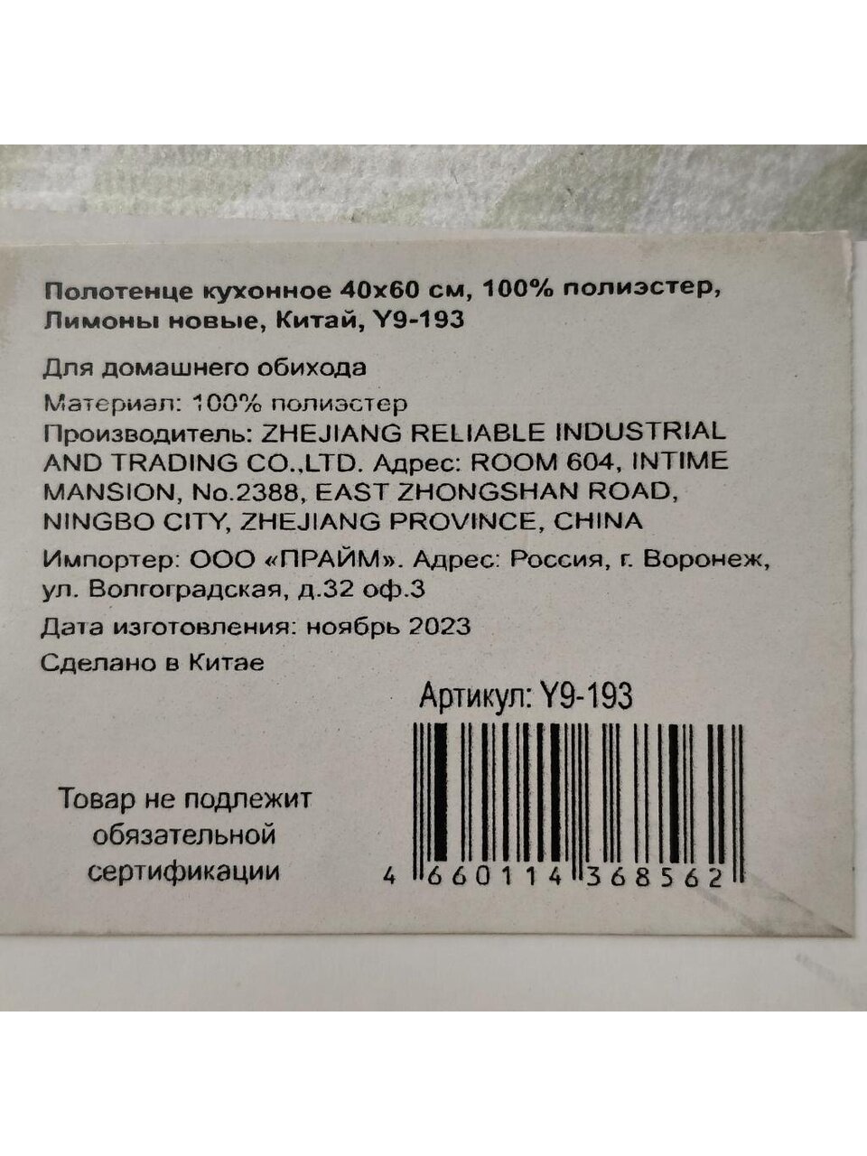 Вы можете приобрести «Полотенце кухонное 40х60 см, 100% полиэстер, Лимоны новые, Китай, Y9-193» и другие товары в нашем интернет-магазине в Россоши по низким ценам и с бесплатным самовывозом.