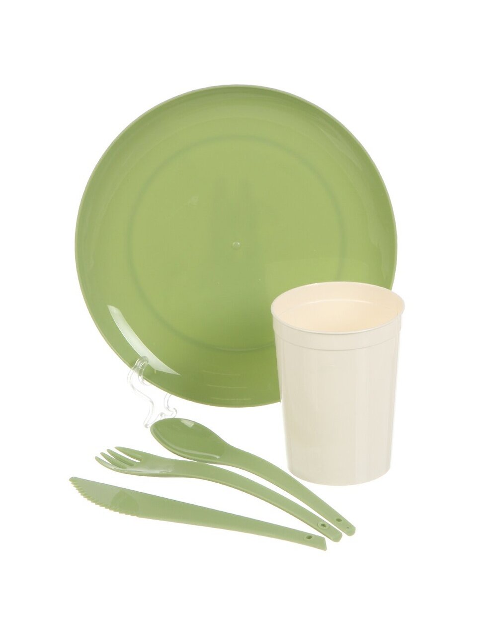 Набор выполнен из высококачественного полипропилена, что гарантирует его долговечность и устойчивость к внешним воздействиям. Яркий зеленый цвет добавит настроения в любой пикник и сделает его более запоминающимся. Компактность и легкость комплекта обеспечат удобство в транспортировке и хранении.