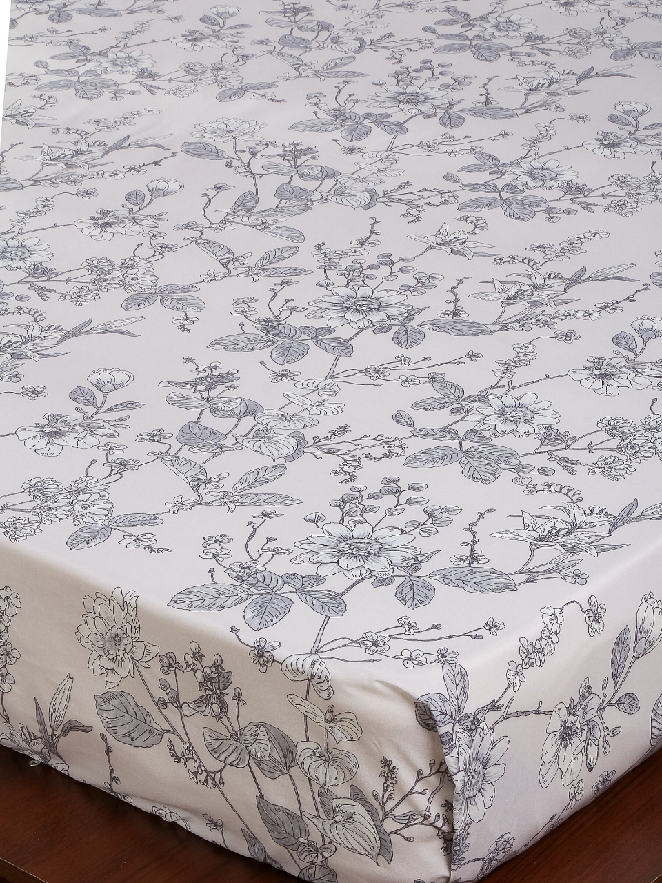 Простыня выполнена из 100% хлопка (бязь), плотность ткани — 120 г/м², что обеспечивает износостойкость и приятную текстуру на ощупь.
