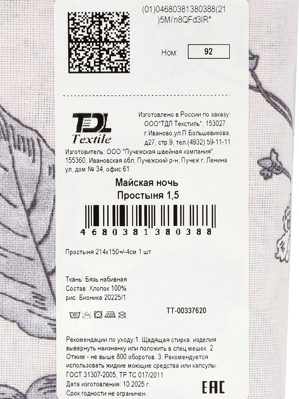 В отличие от синтетических аналогов, бязь лучше пропускает воздух и сохраняет свежесть даже в жаркое время года. Простыня подходит для стандартных полутораспальных матрасов, не соскальзывает и легко заправляется. Если вы ищете, чем отличается эта простыня от других — натуральная бязь не электризуется, не линяет и сохраняет форму после многократных стирок. "Подходит ли простыня для подарка?" — да, лаконичный дизайн Майская ночь универсален и впишется в любой интерьер.