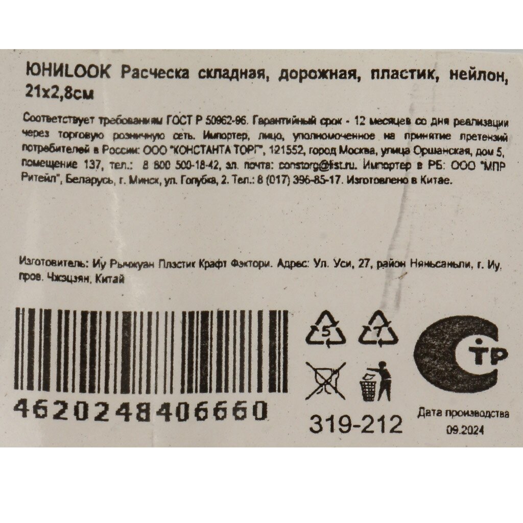 Складная дорожная расческа ЮниLook 21х2.8 см — компактное решение для аккуратной укладки в поездках, на даче и каждый день. Лёгкая, удобная, всегда под рукой!
