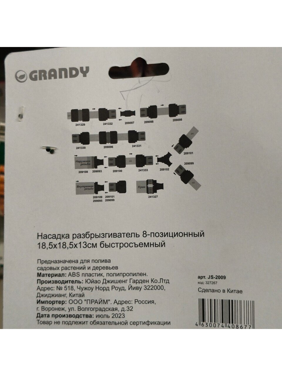 Разбрызгиватель Grandy JS-2009 — эффективное решение для полива газона и огорода. Восемь режимов распыления позволяют выбрать оптимальный вариант для различных растений. Быстросъемное крепление и фиксация к земле обеспечивают легкую установку и надежность. ABS-пластик гарантирует долговечность и устойчивость к погодным условиям. Покупка разбрызгивателя Grandy — это экономия времени и равномерный полив без лишних усилий.