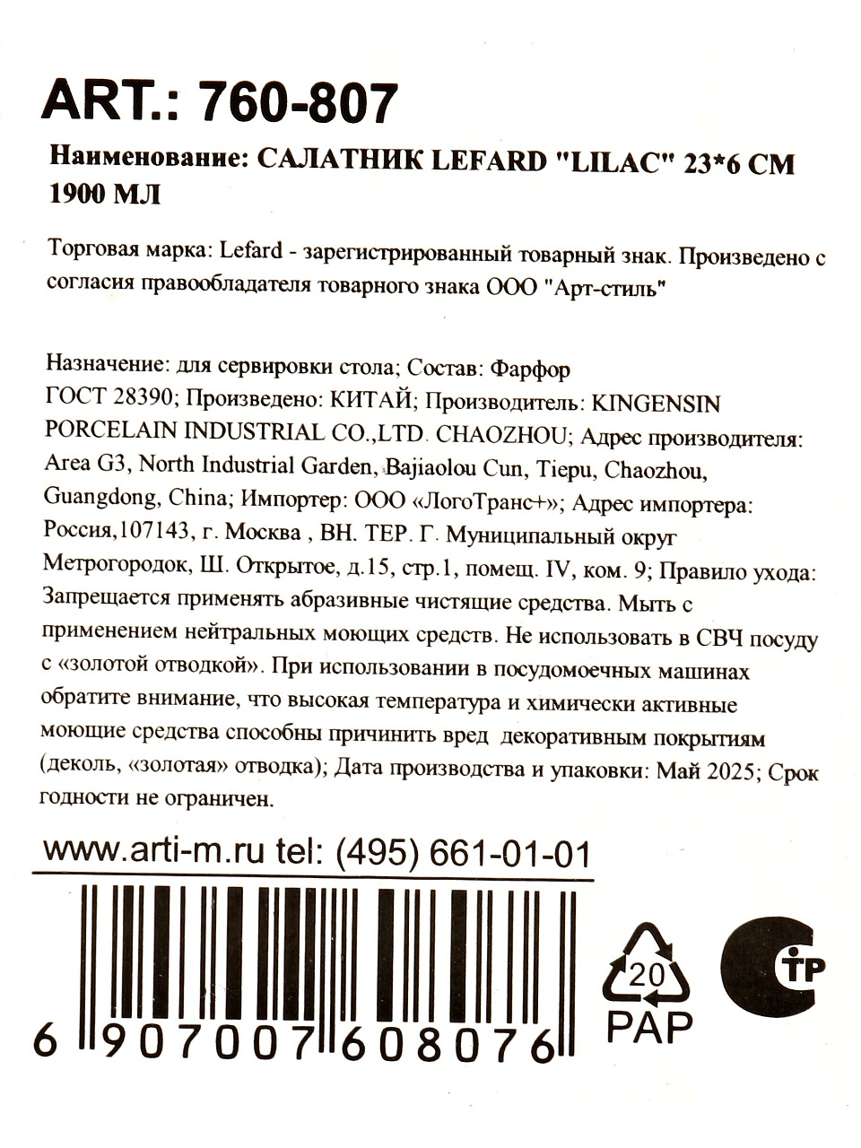 Многие покупатели интересуются, чем отличается фарфоровый салатник от стеклянных или пластиковых аналогов. Фарфор лучше сохраняет температуру, не впитывает запахи и устойчив к окрашиванию, а также выглядит более презентабельно на столе. Салатник Lefard Lilac не предназначен для использования в микроволновой печи и посудомоечной машине, что важно учитывать при выборе — если вам важно быстрое мытьё, обратите внимание на этот нюанс.