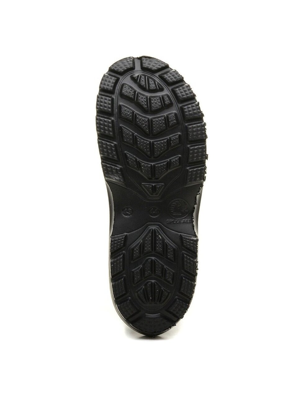 Ботинки сделаны из непромокаемого материала ЭВА, который отлично держит температуру стопы и не пропускает холод внутрь изделия, а также обладают чрезвычайной легкостью. Структура материала надежно оберегает от попадания влаги внутрь сапога, а стенки изделия не деформируются и не промокают даже при долгом нахождении в воде.