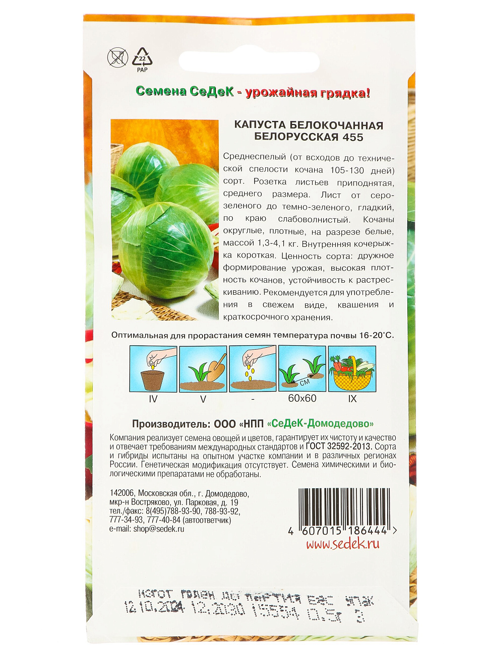 Закажите семена капусты Белорусская 455 Седек — получите урожай без лишних хлопот.