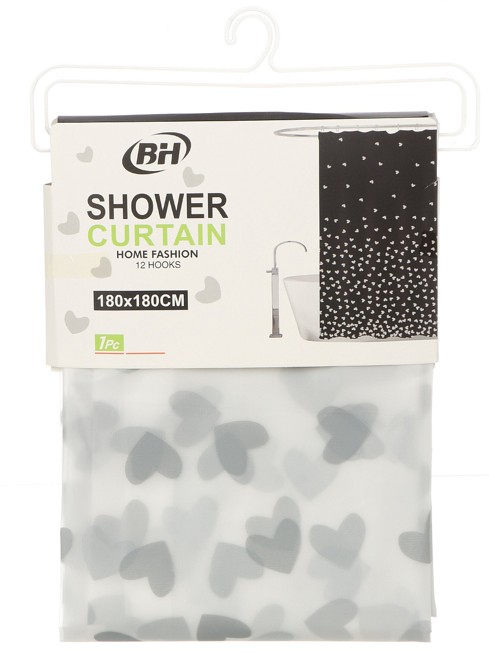 Штора для ванной 180х180 см Peva «Черные сердца» — стильный акцент для вашей ванной, который защитит от брызг и создаст уют. Лёгкая установка, долговечность, трендовый дизайн.