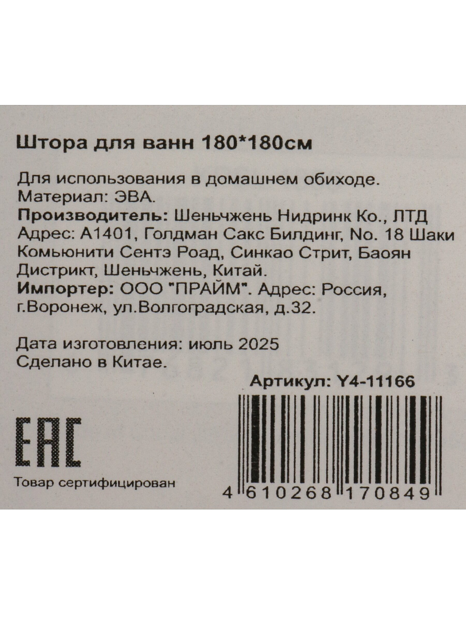 Штора для ванн 180х180 см, PEVA, Бежевый глянец, Y4-11166