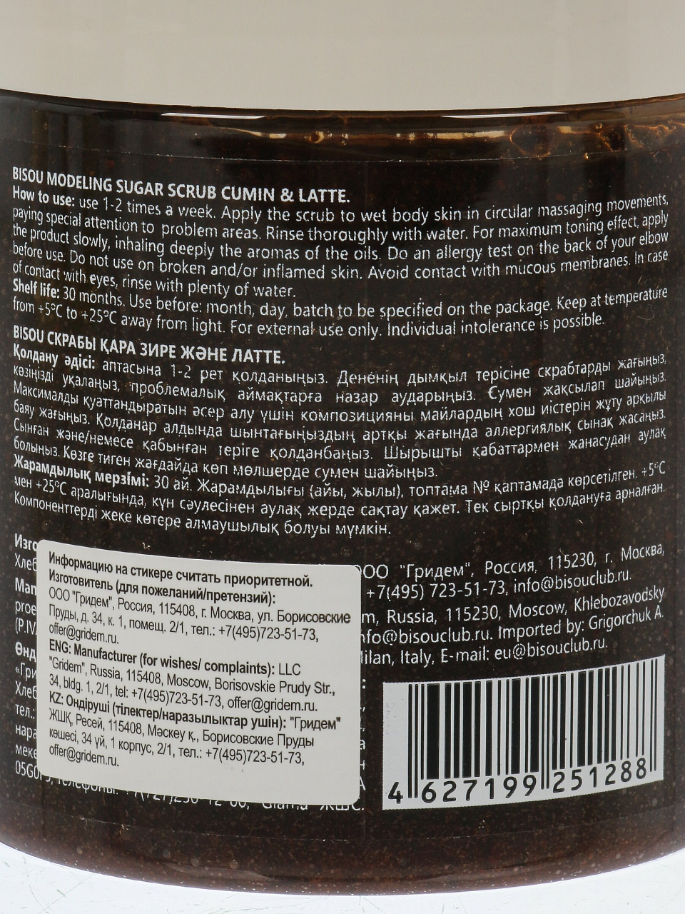 Объём скраба — 250 мл, поставщик — Россия. Удобная упаковка подходит для хранения и транспортировки.