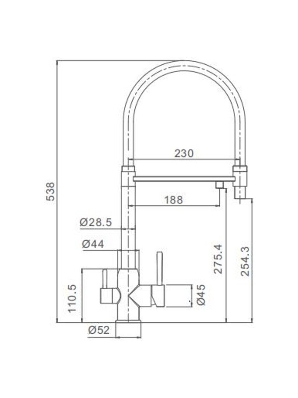 - Высота излива, см25.4 см