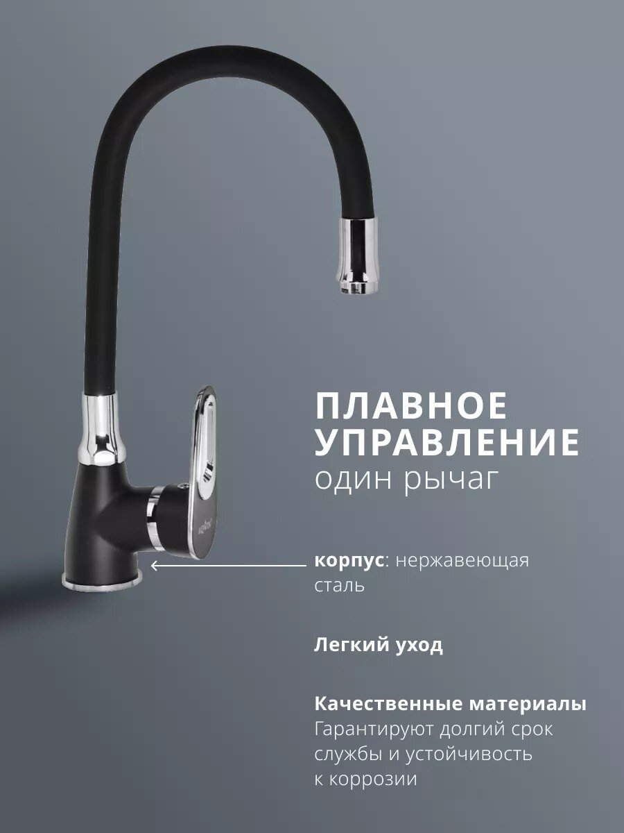 Смеситель для кухни Aqwin A41274-6: гибкий излив, современный дизайн, матовый черный цвет. Удобство и долговечность для стильной кухни по выгодной цене.