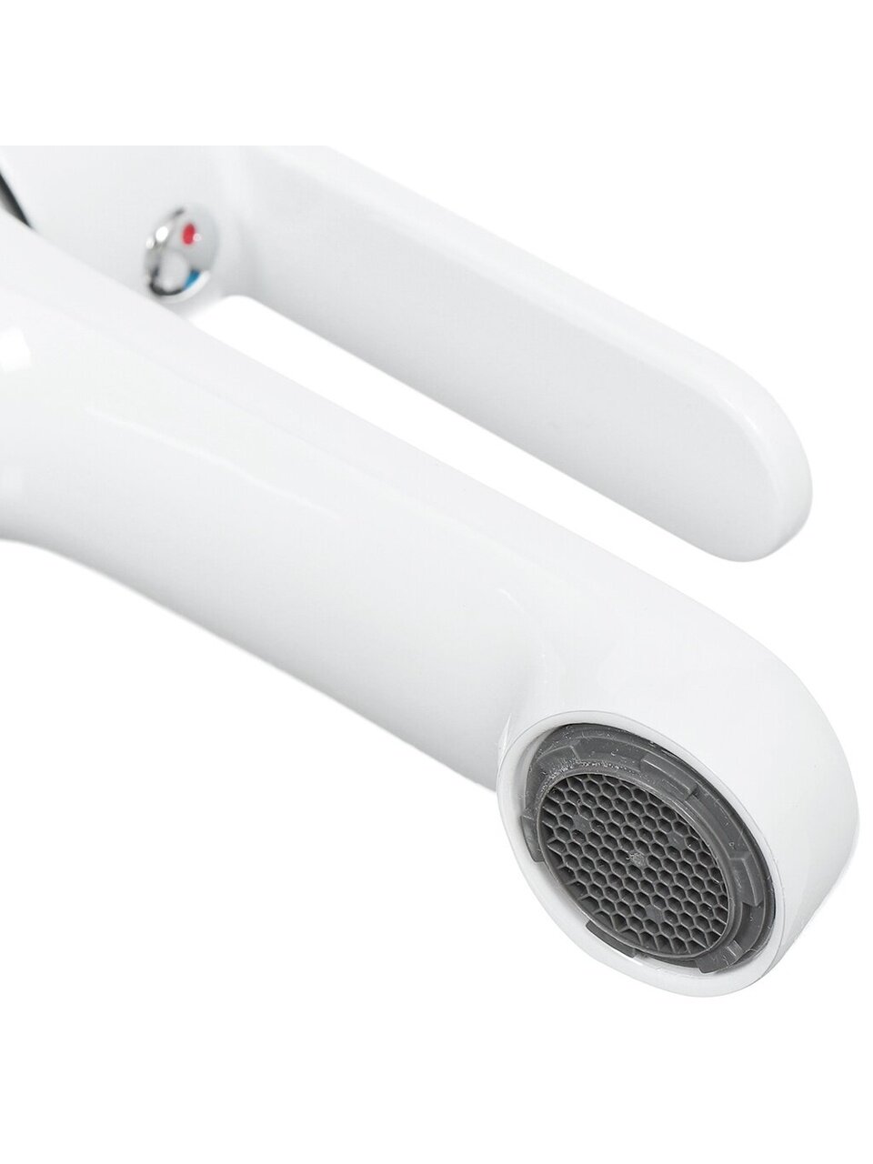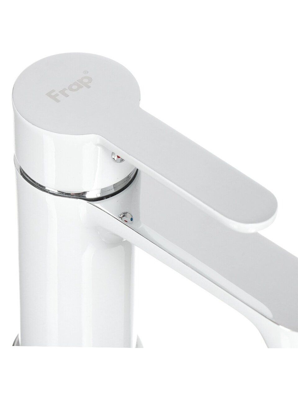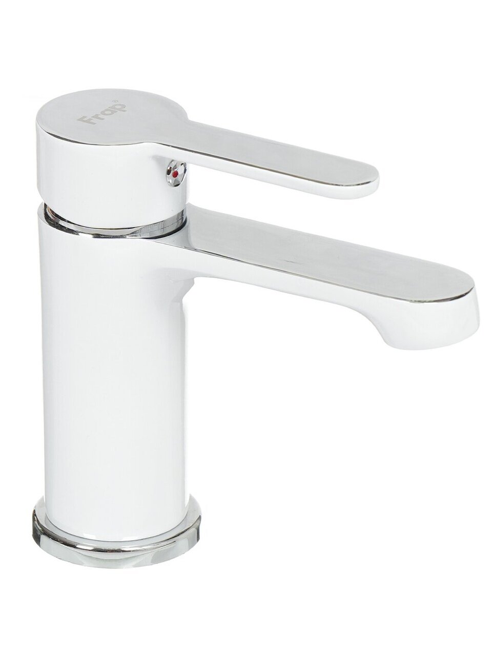 Смеситель для раковины Frap F1041 — стильное решение для компактных ванных комнат: короткий излив, прочная латунь, белое глянцевое покрытие, монтаж за 15 минут.