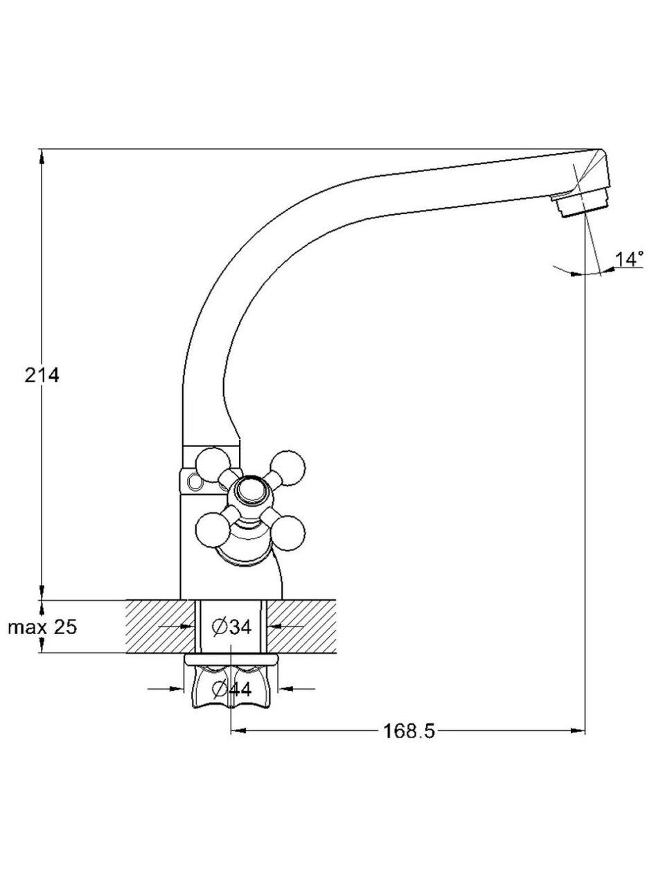 - Уникальная конструкция: высокий поворотный излив (23,7 см) для удобства мытья крупной посуды и наполнения высоких емкостей