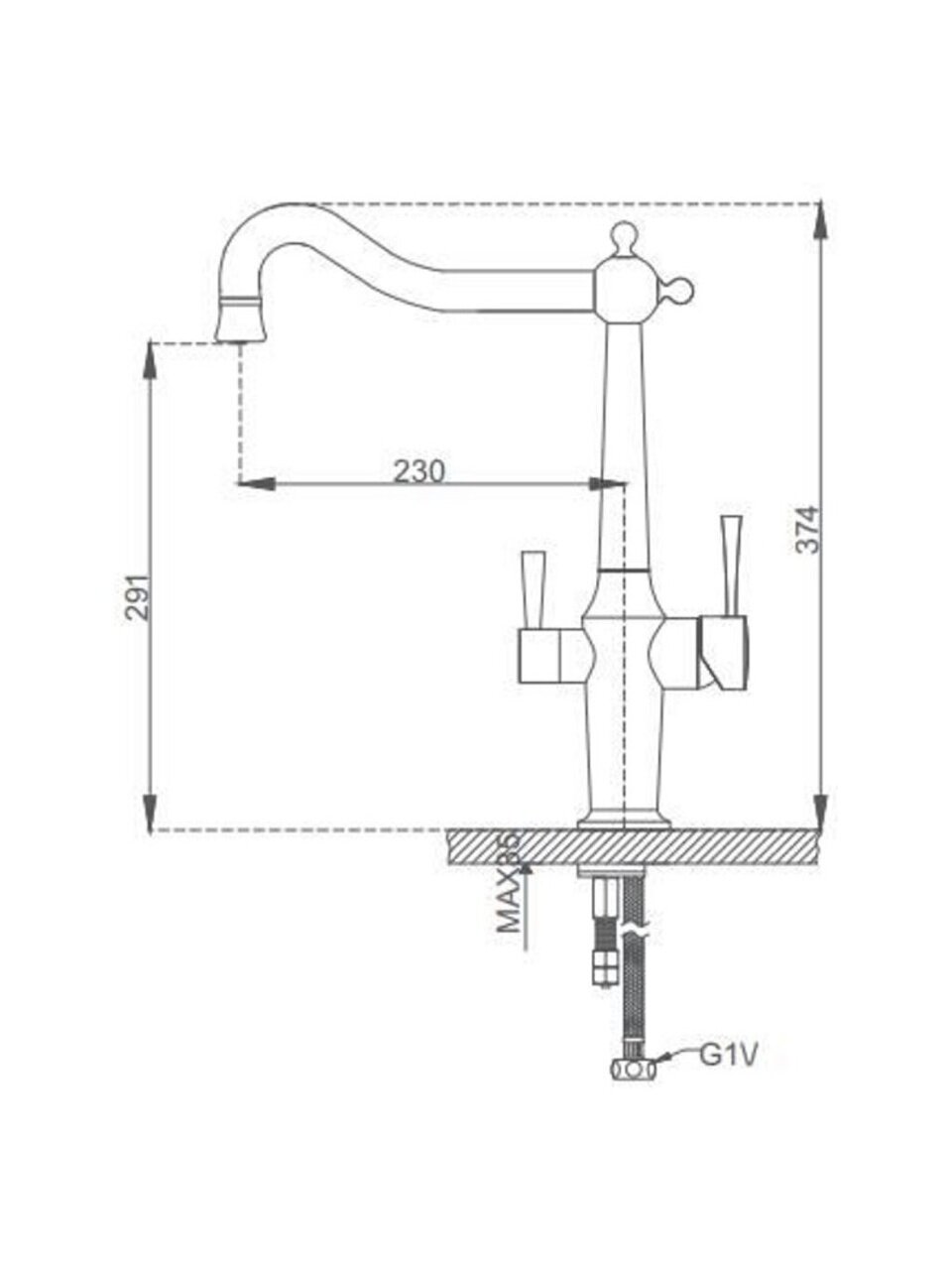 Высота излива — 29,1 см, длина — 23 см. Высокий поворотный излив обеспечивает удобство при мытье крупной посуды или наполнении больших емкостей.