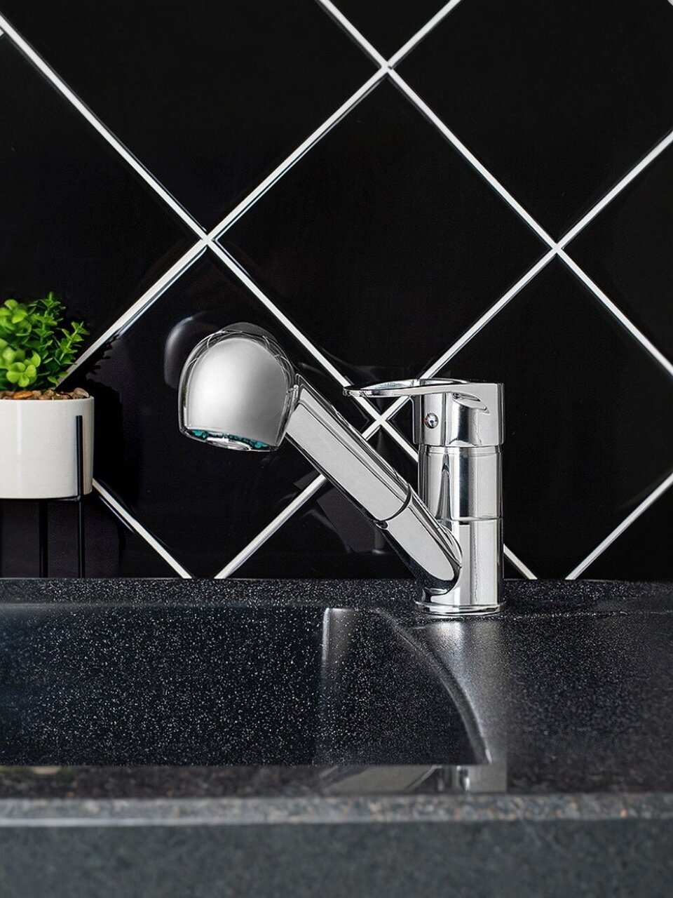 Часто спрашивают, чем отличается смеситель с выдвижным изливом от обычного. Главное — мобильность: гибкий шланг облегчает уход за мойкой и ускоряет хозяйственные задачи. Корпус из цинкового сплава с глянцевым хромом — оптимальный выбор для кухни, где важна не только практичность, но и внешний вид. В отличие от аналогов с коротким изливом, данная модель (длина 22 см, высота 11 см) подходит для большинства стандартных моек и не требует сложного ухода.