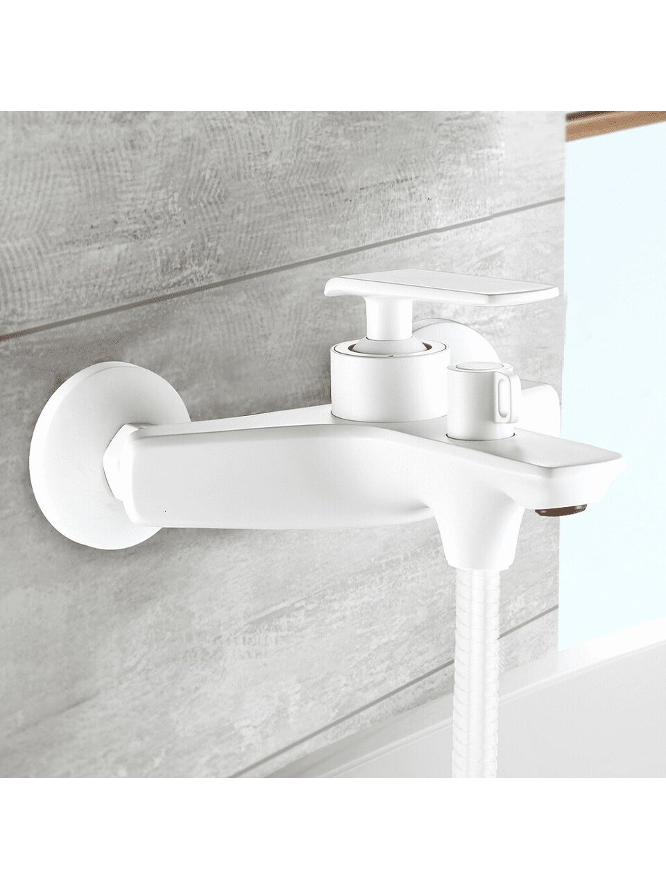 Смеситель для ванны Golden Fox Dartmoor с коротким изливом — современное решение для компактных санузлов: латунь, матовый белый, аэратор для экономии воды.