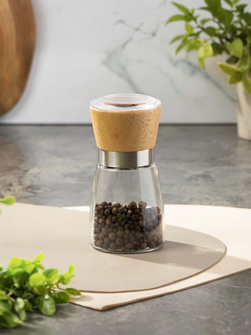 Изысканная мельница для специй из стекла и дерева от бренда Daniks станет стильным дополнением на любой кухне. Объем 170 мл позволяет хранить достаточное количество специй для ежедневного использования. Механическое управление делает процесс измельчения легким и удобным. Материал жернов: керамика.