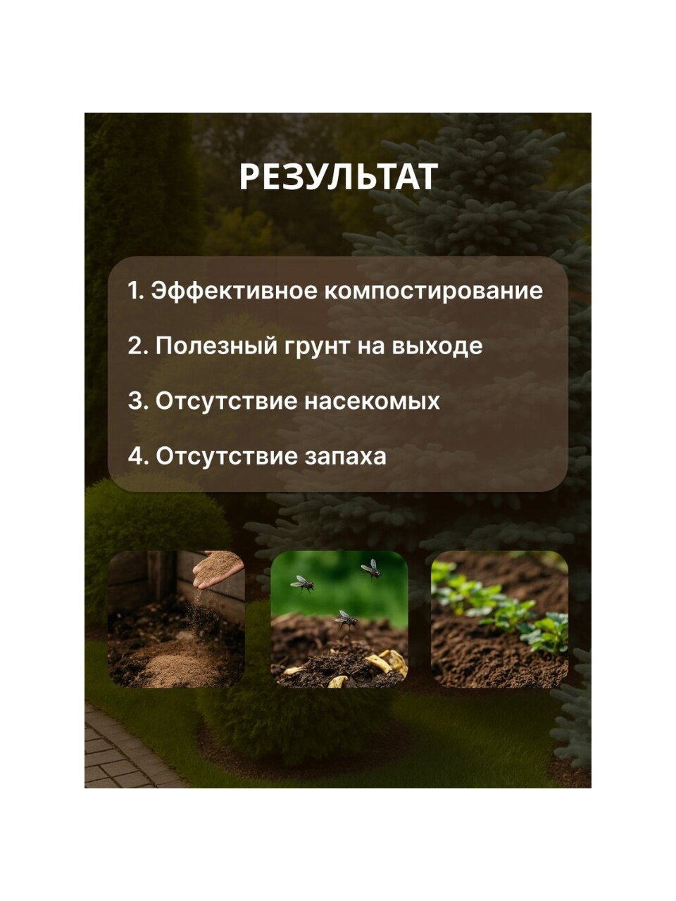 - Быстро разлагает органику.