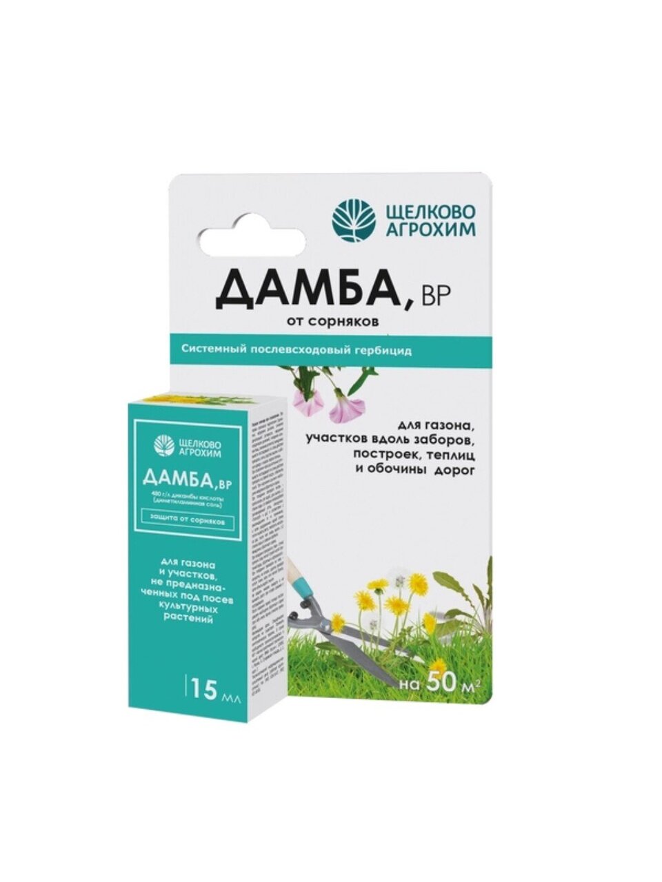 - Эффективность: Дамба уничтожает сорняки, двудольные, бодяк и вьюнок, обеспечивая чистоту и ухоженность вашего газона.