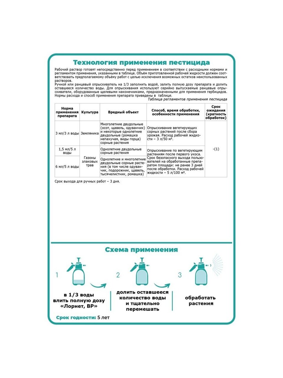 Покупка гербицида Лорнет позволит вам сэкономить время и силы, обеспечивая чистоту и здоровье вашего участка. Оцените простоту и удобство использования этого средства для борьбы с сорняками и наслаждайтесь ухоженной земляникой без лишних усилий.