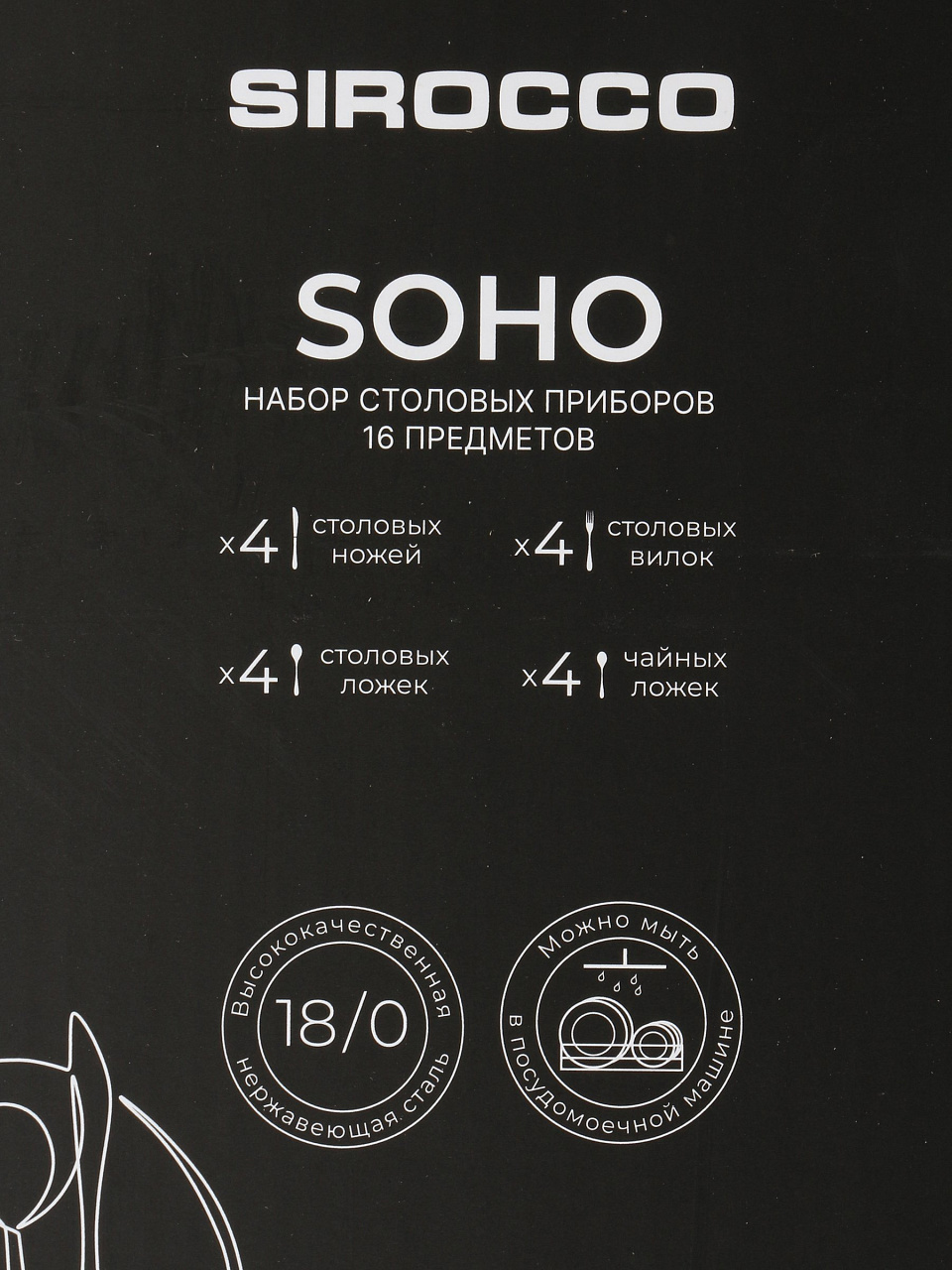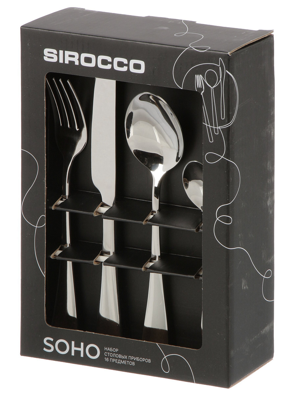 Набор столовых приборов Sirocco Soho из нержавеющей стали — это сочетание эстетики и практичности. В комплекте 16 предметов на 4 персоны: ложки, вилки, ножи и чайные ложки. Благодаря прочному материалу приборы не теряют блеск, не подвержены царапинам и легко моются даже в посудомоечной машине. Такой набор часто ищут для подарка коллегам, друзьям или для обустройства современной кухни.