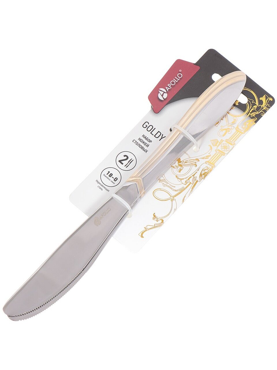 Вы можете приобрести «Нож нержавеющая сталь, 2 предмета, столовый, Apollo, Goldy, GLD-33» и другие товары в нашем интернет-магазине в Смоленске по низким ценам и с бесплатным самовывозом.