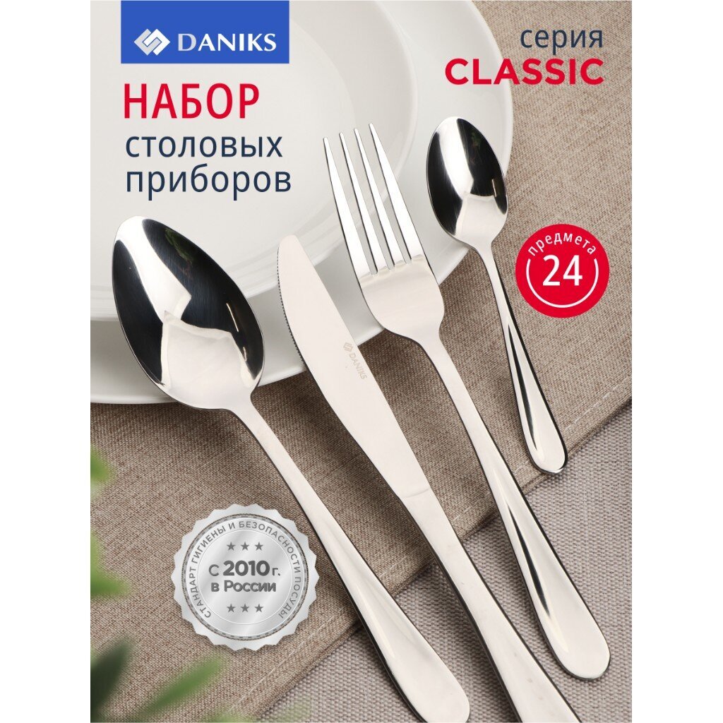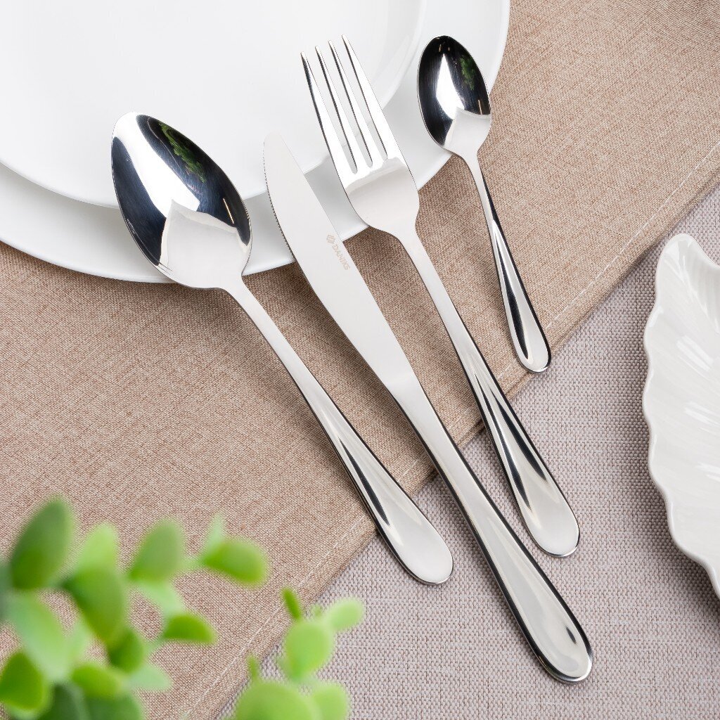 Элегантный набор столовых приборов Daniks Classic на 6 персон: 24 предмета из нержавеющей стали для стильного сервирования дома, на даче или в подарок.