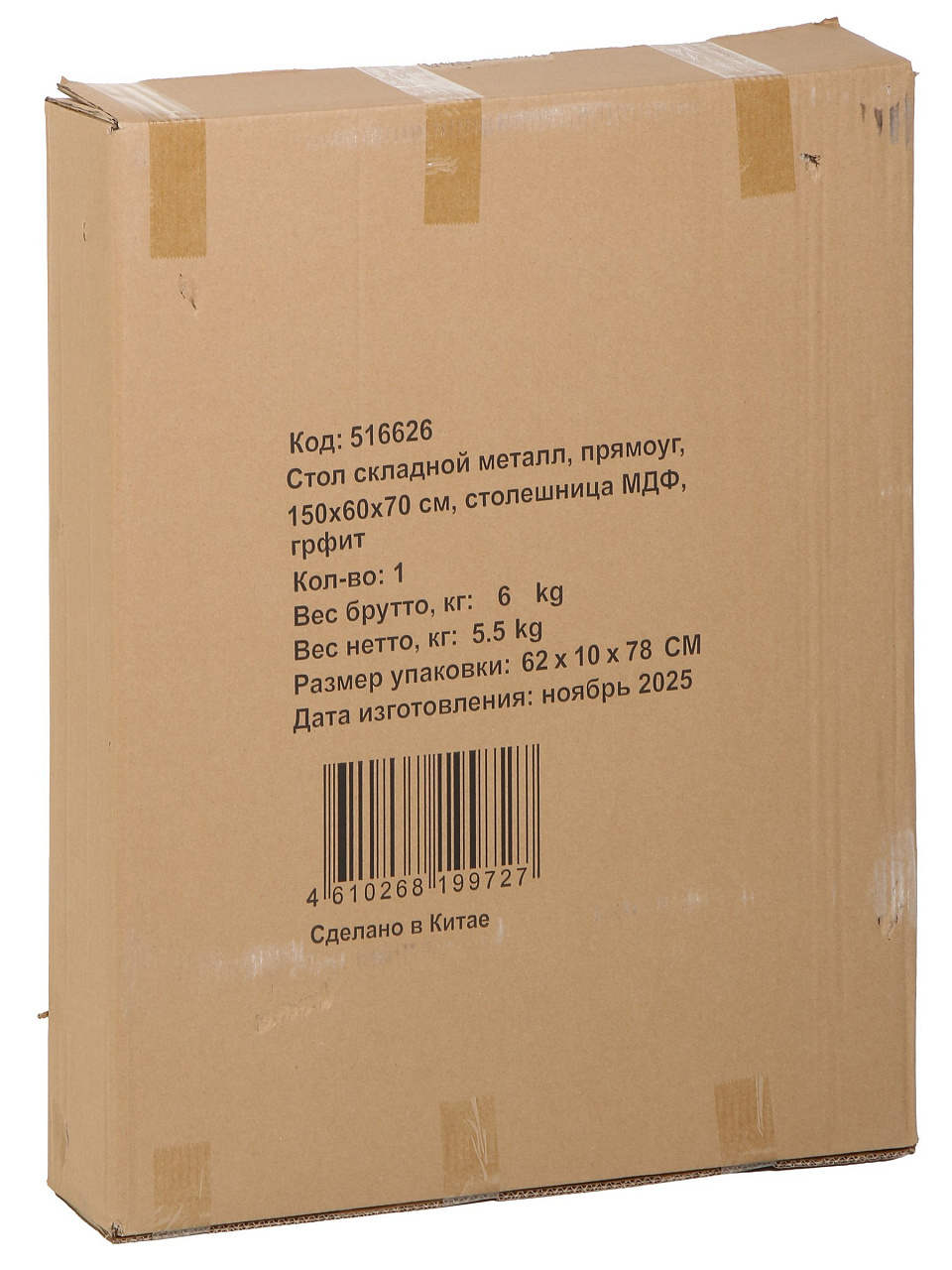 Вы можете приобрести «Стол складной 150х60х70 см, прямоугольный, металл, столешница МДФ, графит» и другие товары в нашем интернет-магазине в Брянске по низким ценам и с бесплатным самовывозом.