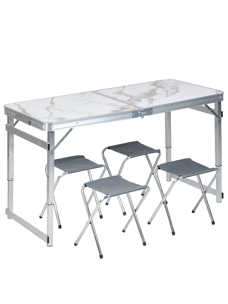 Складной металлический стол 120х60 см с 4 стульями и столешницей «мрамор» — компактное решение для дачи, пикника и дома: максимум комфорта, минимум места, стильный дизайн.