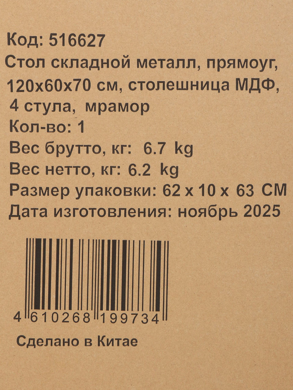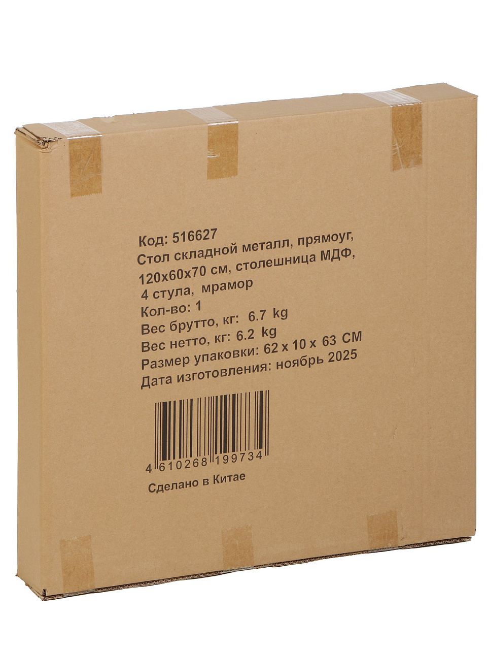 Вы можете приобрести «Стол складной 120х60х70 см, 4 стула, прямоугольный, металл, столешница МДФ, мрамор» и другие товары в нашем интернет-магазине в Брянске по низким ценам и с бесплатным самовывозом.