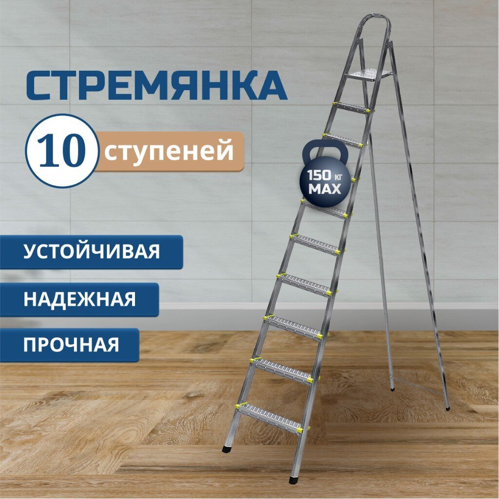 Вы можете приобрести «Стремянка 1 секция, 10 ступеней, металл, 2.21 м, 150 кг, Amigo, ЛС1010» и другие товары в нашем интернет-магазине в Брянске по низким ценам и с бесплатным самовывозом.