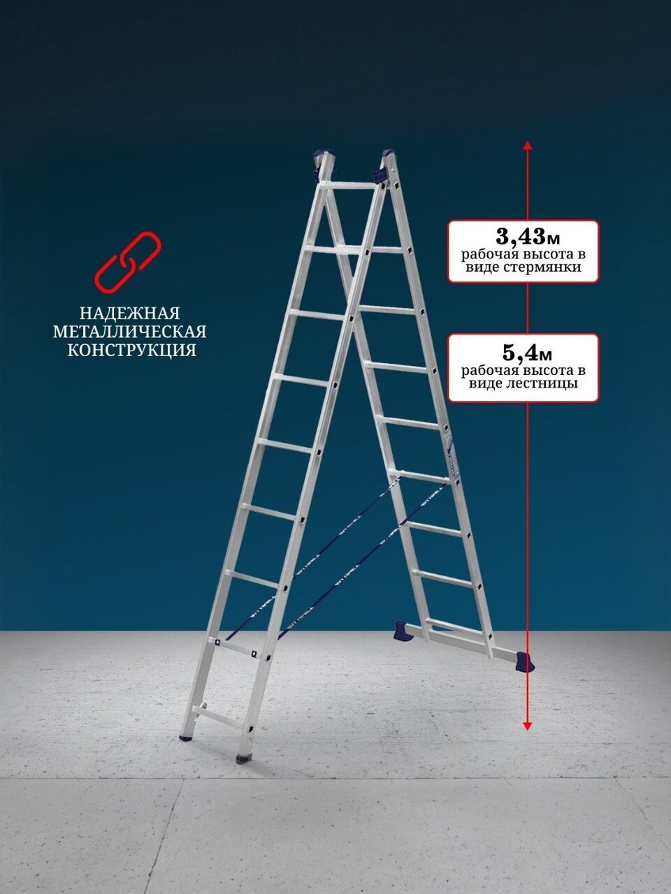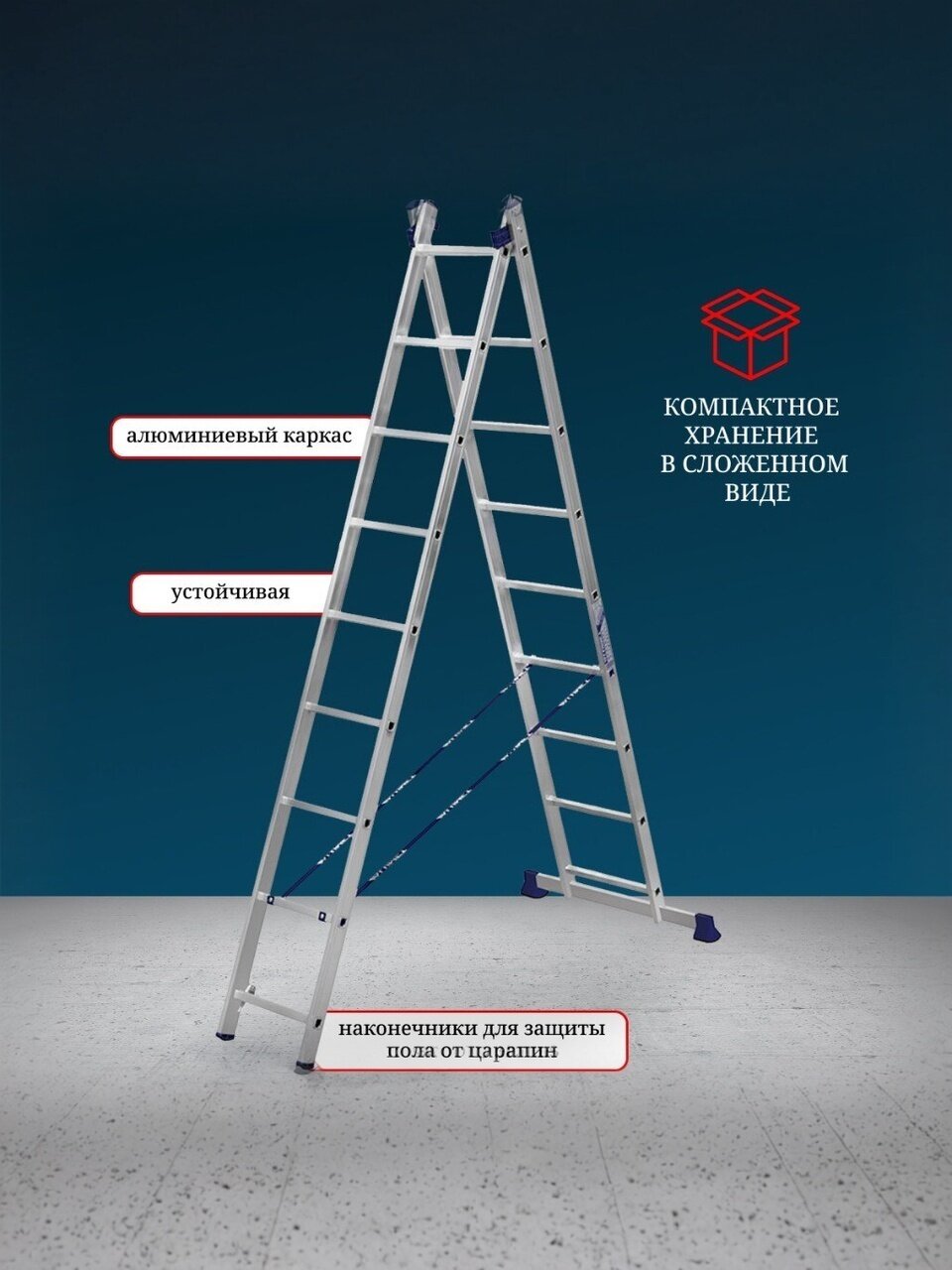 Вы можете приобрести «Лестница 2 секции, 9 ступеней, алюминий, 4.2 м, 150 кг, Alumet, H2 5209» и другие товары в нашем интернет-магазине в Иваново по низким ценам и с бесплатным самовывозом.