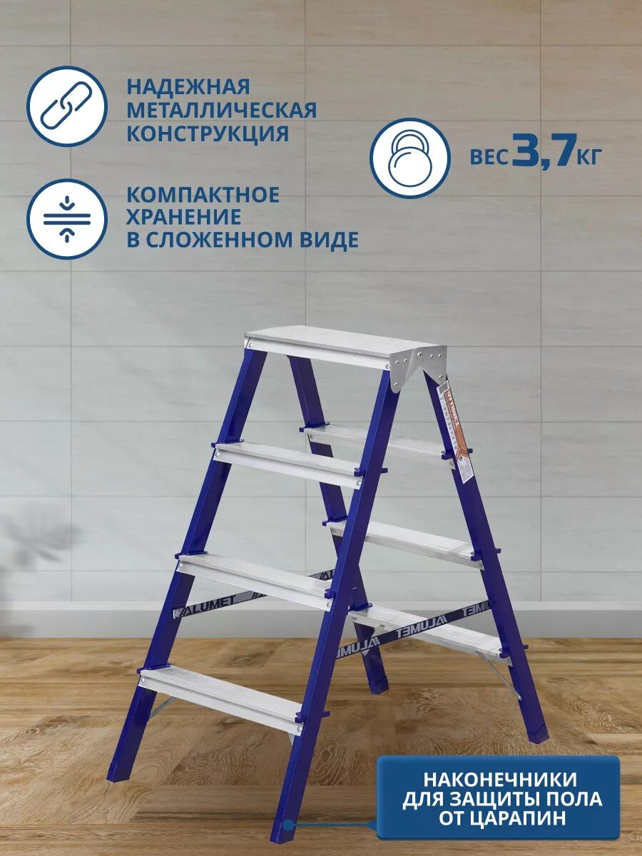 - Стремянка стальная двухсторонняя серии МD предназначена для проведения различных видов работ как в быту, так и на производстве.