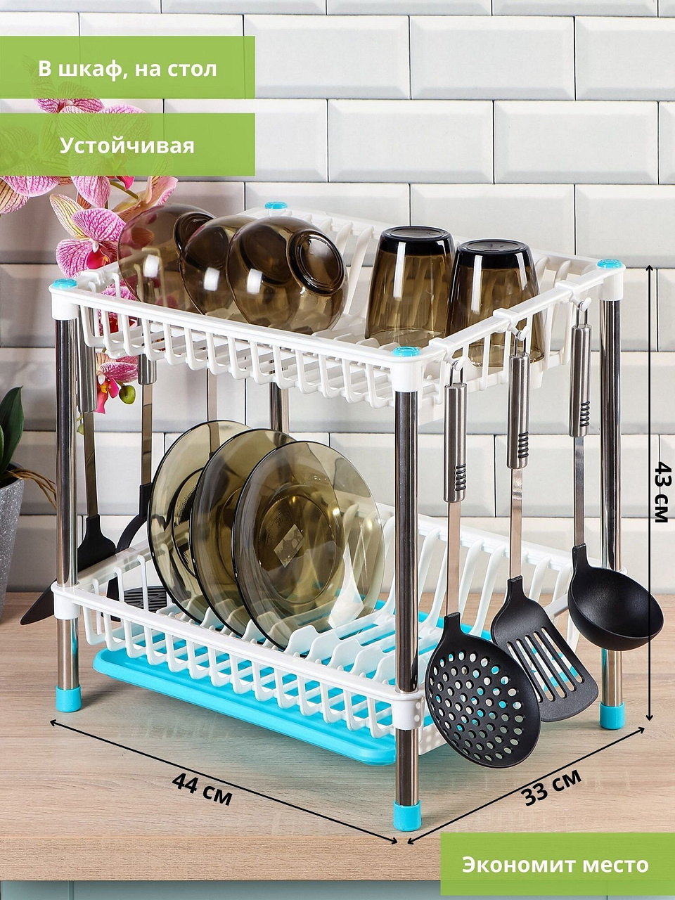 Сушилка для посуды из нержавеющей стали с поддоном – практичное и стильное решение для современной кухни. Компактные размеры 44х32.5х43 см позволяют разместить аксессуар даже в ограниченном пространстве, делая процесс сушки посуды максимально удобным. Благодаря двум ярусам появляется возможность разместить больше тарелок, чашек и столовых приборов, сохраняя порядок и чистоту на рабочей поверхности. Сушилка выполнена в актуальном голубом цвете, который гармонично впишется в любой интерьер и добавит свежести кухонному пространству.