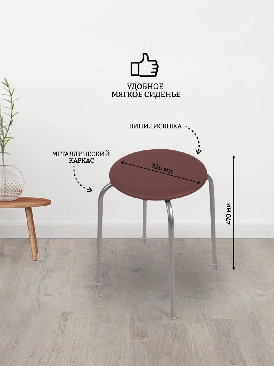 Вы можете приобрести «Табурет 320х320х470 мм, коричневый, сиденье круглое, винилискожа, на болтах, на четырех металлических опорах, Nika, ТЭ2/К» и другие товары в нашем интернет-магазине в Ельце по низким ценам и с бесплатным самовывозом.