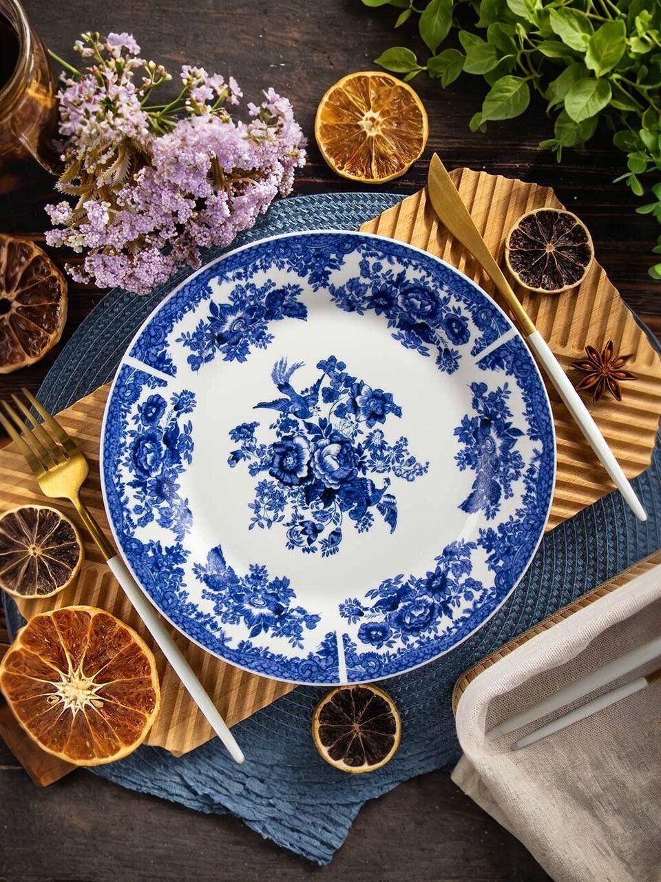 Тарелка обеденная Daniks Жар-Птица 23 см — керамика с гжелью для стильной сервировки, подходит для СВЧ и посудомоечной машины. Идеальный выбор для дома и подарка.