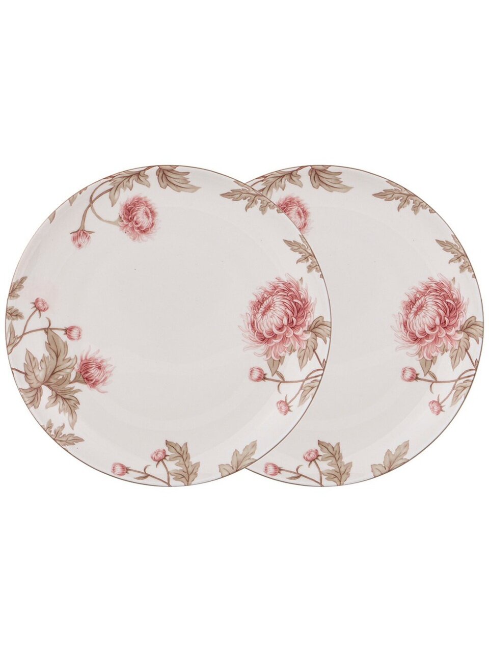 Диаметр каждой тарелки — 20.5 см, форма круглая, материал — фарфор, в наборе 2 штуки.