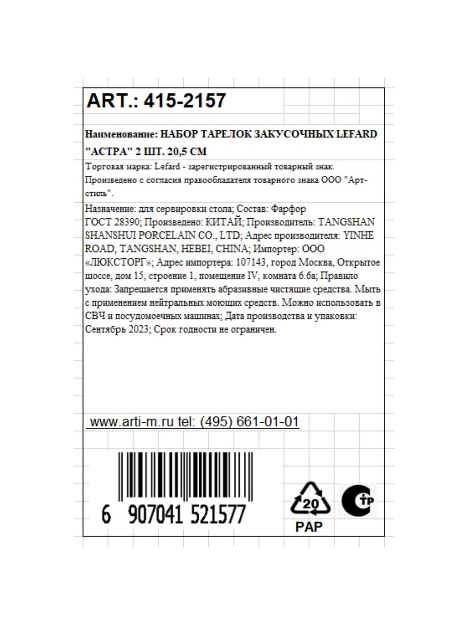 Вы можете приобрести «Набор тарелок закусочный, фарфор, 2 шт, 20.5 см, круглый, Астра, Lefard, 415-2157» и другие товары в нашем интернет-магазине в Нижнем Новгороде по низким ценам и с бесплатным самовывозом.