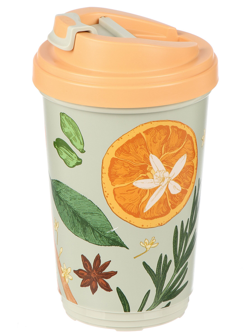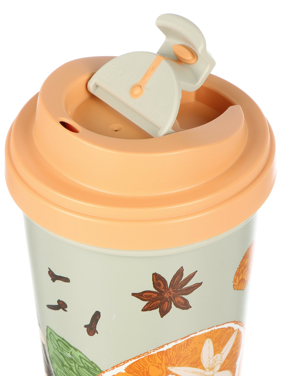 Термостакан Phibo 400 мл с клапаном и декором «Специи»: сохраняет напитки горячими до 3 часов, не протекает, подходит для дома и дачи.