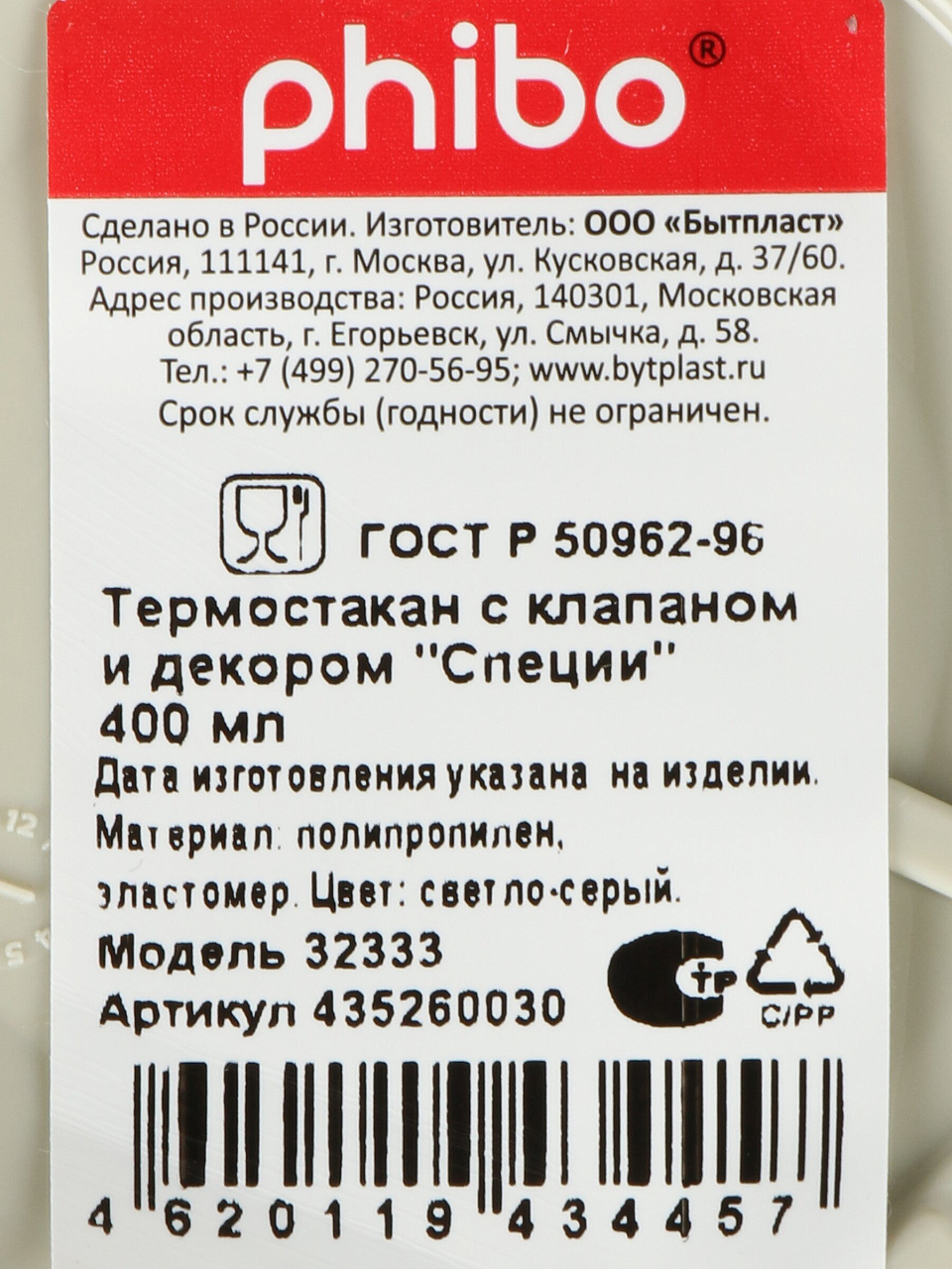 Выбирайте термостакан 400 мл Phibo — выгодная цена, стильный декор и гарантия производителя. Закажите с доставкой и убедитесь в качестве лично!